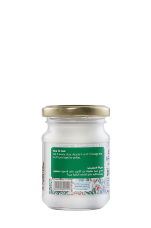 يُوضع الكريم على القدمين النظيفة والجافة، مع تدليك لطيف حتى يتم امتصاصه بالكامل. يُستخدم يوميًا للحصول على أفضل النتائج.