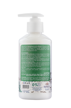 تمتّعي بتصفيف سهل وتجعيدات صحية ومحددة مع بلسم بدون شطف ليف ان من إنفينيتي ناتشرالز. تركيبة مغذية متعددة الوظائف تحتوي على زبدة الشيا من غانا، وجل الألوفيرا من مصر، وزيت بذور العنب من فرنسا، لتمنح شعرك نعومة، ترطيب، ولمعان طبيعي.